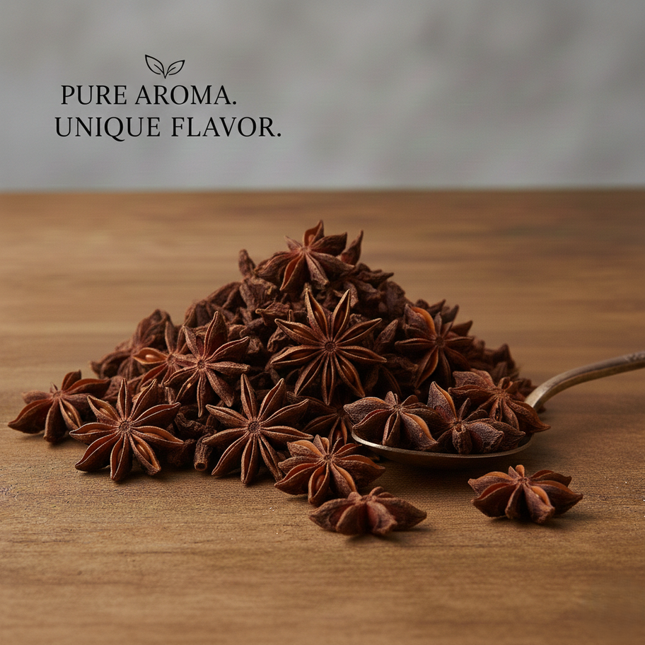 Perfect for biryanis, curries, garam masala, soups, teas, and spice blends, our star anise delivers a sweet, spicy, and aromatic finish that enhances every recipe. Hygienically packed to ensure freshness and purity in every piece.